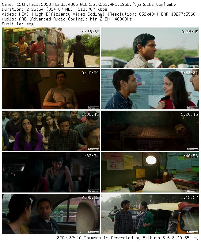 Filename: 12th.Fail.2023.Hindi.480p.WEBRip.x265.AAC.ESub.[9jaRocks.Com].mkv