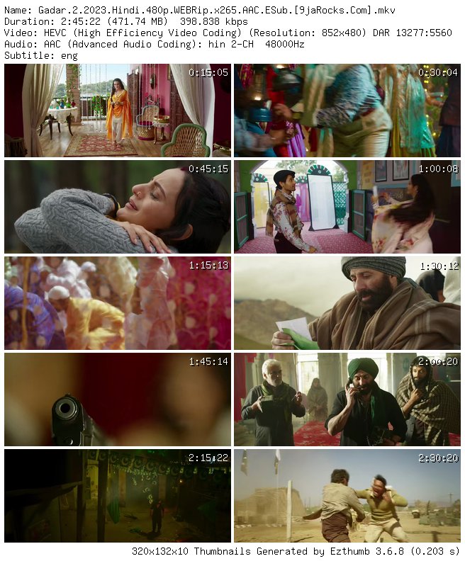 Filename: Gadar.2.2023.Hindi.480p.WEBRip.x265.AAC.ESub.[9jaRocks.Com].mkv