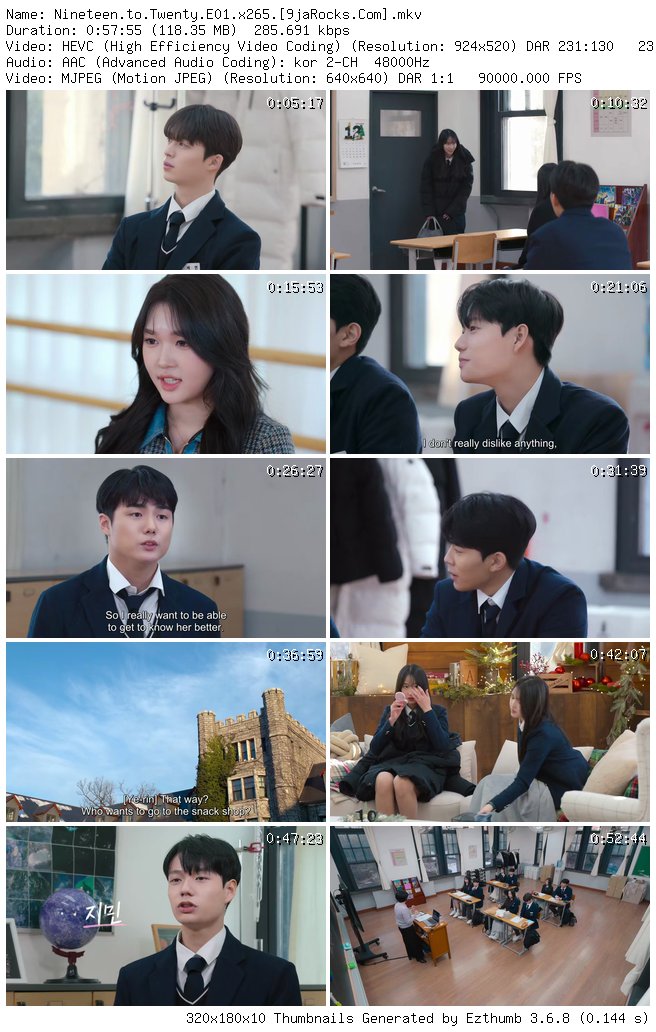 Filename: Nineteen.to.Twenty.E01.x265.[9jaRocks.Com].mkv