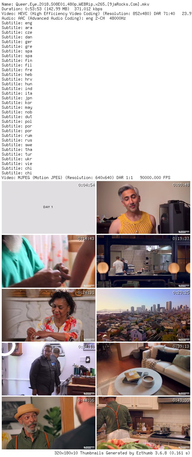 Filename: Queer.Eye.2018.S08E01.480p.WEBRip.x265.[9jaRocks.Com].mkv