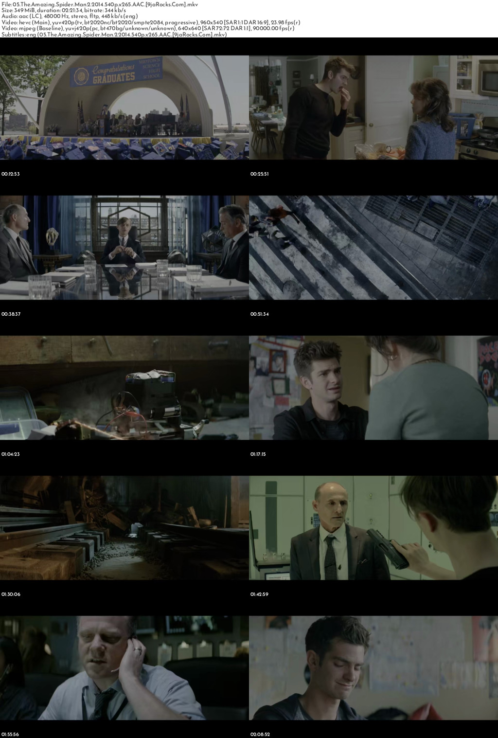 Filename: 05.The.Amazing.Spider.Man.2.2014.540p.x265.AAC.[9jaRocks.Com].mkv